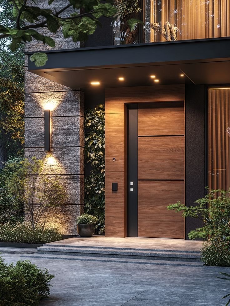 These modern front door designs embody elegance, functionality, and artistic form. From lush vertical gardens that bring nature to your entrance, to Zen-inspired Japanese minimalism with bonsai landscaping, each entryway tells a unique story. The sleek wood and metal detailing adds sophistication, while strategic lighting enhances ambiance and security. Perfect for clients who value design-forward architecture, these doors are more than access points—they’re statements of style. Let The Creative Space transform your entrance into a harmonious blend of luxury, innovation, and welcoming charm.